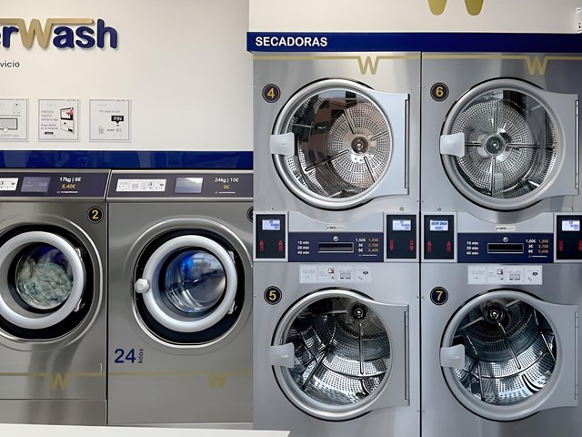 Además, en nuestra lavandería en Cambre encontrarás cuatro secadoras de 24 kg, diseñadas para proporcionar un secado rápido y eficiente, incluso para prendas de mayor volumen.